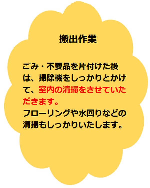 片付け清掃で当社が選ばれる理由片付け清掃のお約束1片付け清掃のお約束2片付け清掃のお約束3